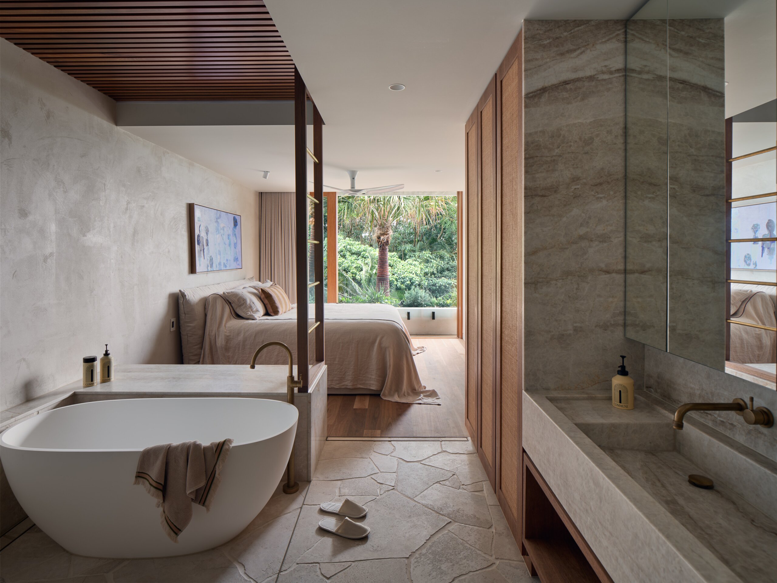Our recently completed project, featuring two luxury three-storey villas perched above Wategos beach, with sweeping views of Byron Bay and beyond.